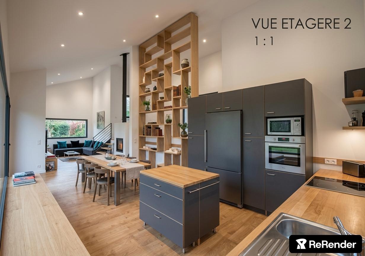 L’architecture associe une toiture à deux pans en tuiles noires et une toiture plate pour le carport. Les façades enduites blanc cassé dialoguent avec des menuiseries en aluminium noir, tandis que les débords de toiture et brise-soleil orientables assurent le confort d’été. Le projet intègre enfin une gestion raisonnée des eaux et préserve une large part de terrain en pleine terre.