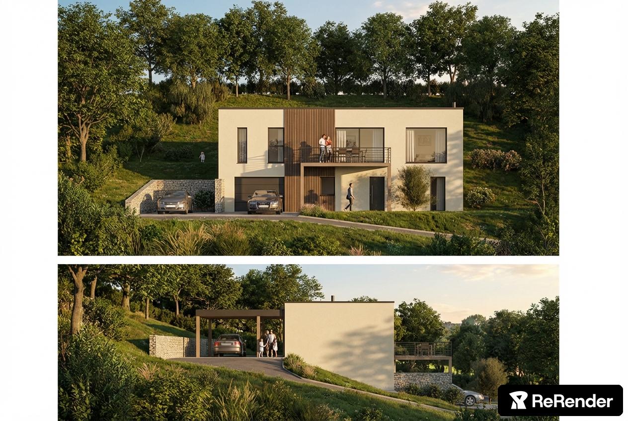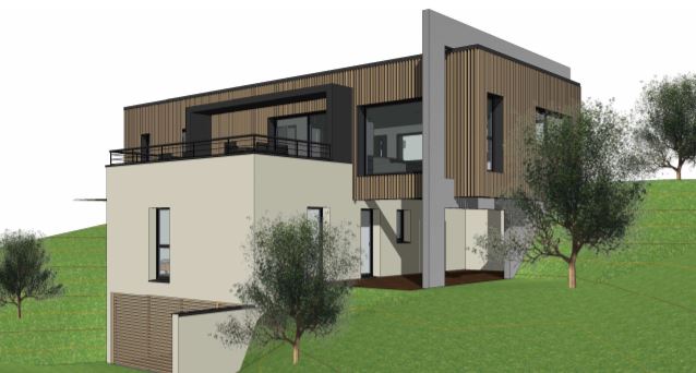 Le projet est conçu pour s’adapter naturellement au terrain, favorisant une insertion paysagère maîtrisée. L’implantation tire pleinement parti de la vue dégagée et de l’orientation Sud-Ouest, déterminante pour la qualité des espaces de vie. Les terres excavées sont réemployées sur site, limitant les transports et l’impact environnemental.